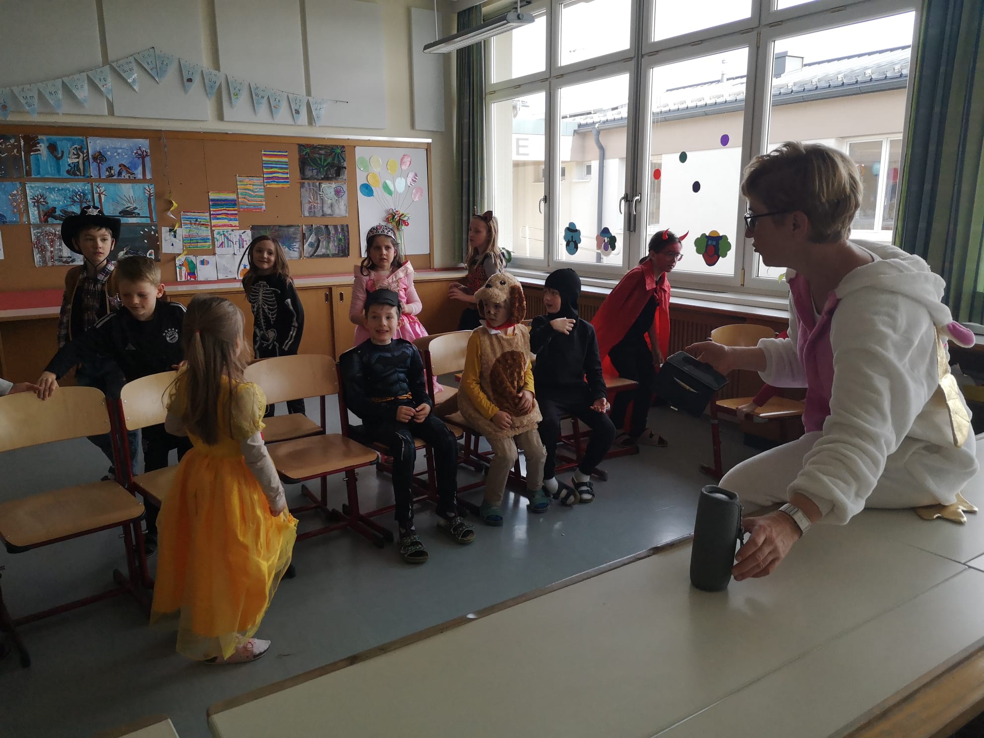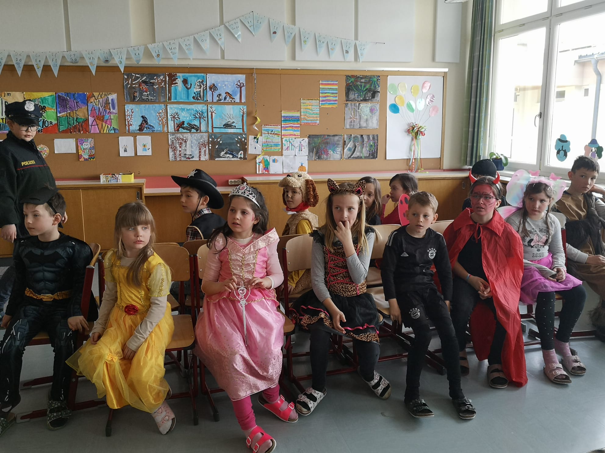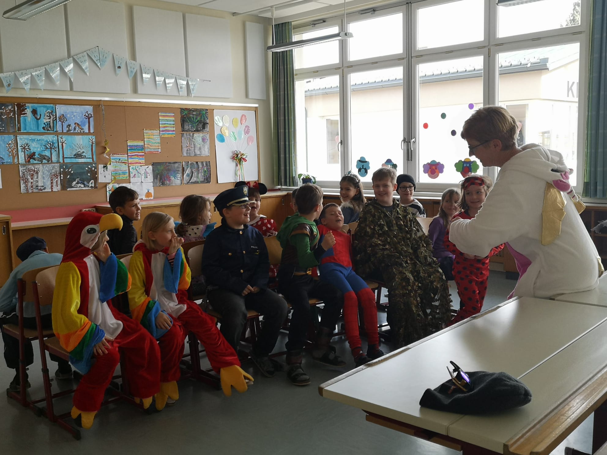 Der Faschingsdienstag wurde auch bei uns in der Volksschule ausgelassen gefeiert. Nach zwei Einheiten Unterricht gab es vom Elternverein eine leckere Faschingsjause. Gestärkt widmeten sie danach alle den lustigen Spielestationen, bis uns der Kindergarten samt Musik abholte, und wir dann gemeinsam zu einen kleinen Umzug durch den Ort aufbrachen. Vielen Dank an alle Mitwirkenden!